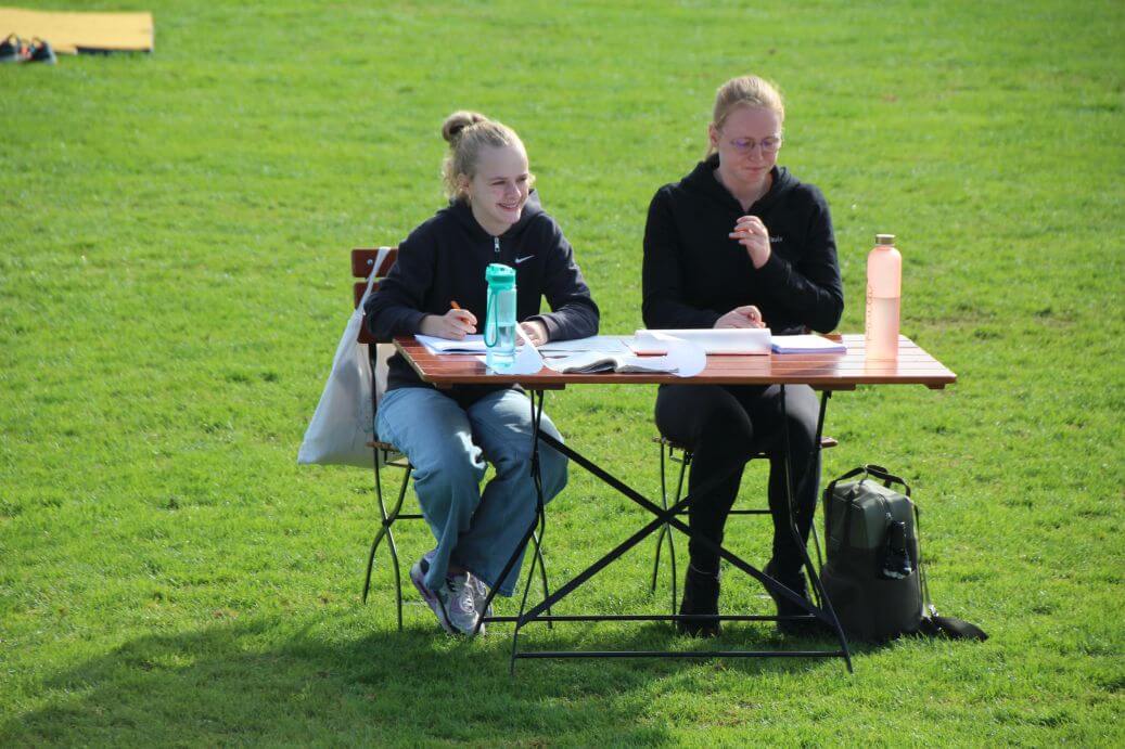 Wie es sich für einen Sportverein anbietet, mitten in den sportlichen Aktivitäten seiner aktiven Sportler.