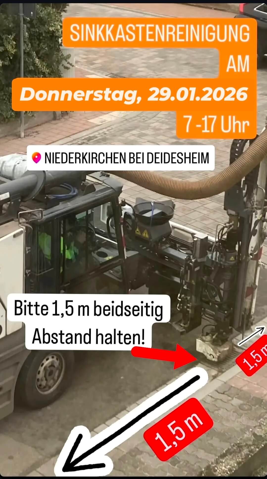 Die Sinkkastenreinigung in der Gemeinde Niederkirchen wurde witterungsbedingt auf Donnerstag, den 29.1.2026 verschoben.