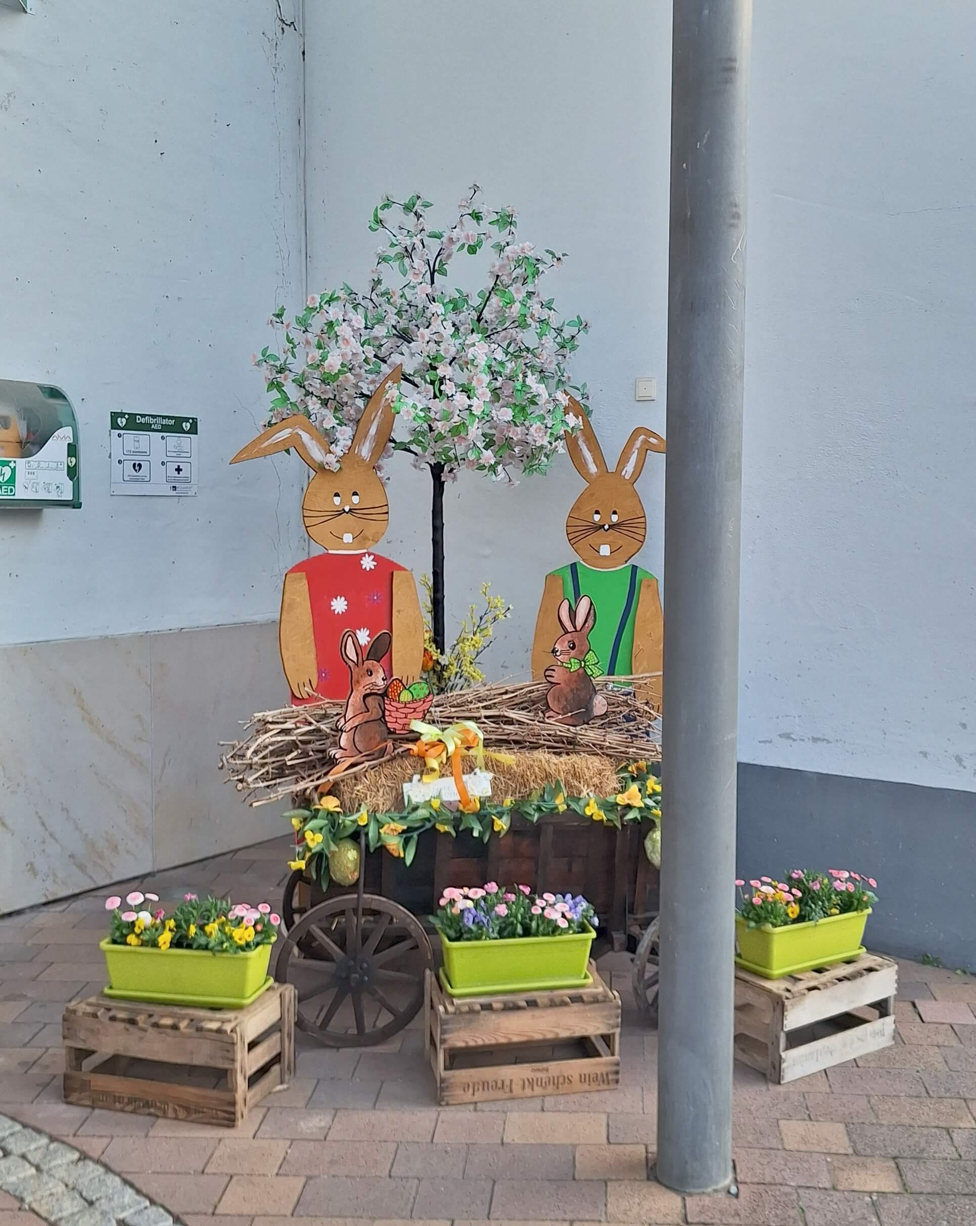 Pünktlich zur Osterzeit erstrahlt unser Dorfplatz wieder in frühlingshaftem und österlichem Schmuck, mit dem schön dekorierten Osterbrunnen, samt Hasenfamilie.