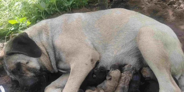 Die Hündin hat im Weinberg 14 Junge zur Welt gebracht, von denen 11 überlebten.
